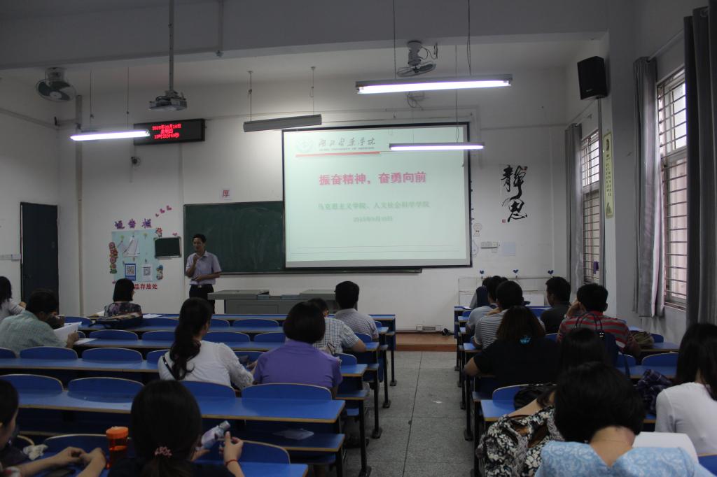 本网讯(通讯员 孙磊)在第31个教师节到来之际,9月10日下午,人人操人人摸人人干、人文社会科学学院在5117教室召开了2015-2016学年第一学期第一次全院职工大会,向全体老师致以节日的慰问并传达学校“加强党的建设 推进依法治校”专题会议精神,安排部署新学期重点工作。会议由学院院长、分党委书记刘涛主持,学院全体老师参会。