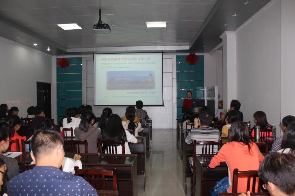 最后她们分享了此次英国培训后的感悟:作为一个教师应该对自己的教育信念和教育行为不断进行自我反思,自我总结并且具有终身学习的愿望与能力,这样才能真正走出教学上的困境,最终走出“平静的绝望”。