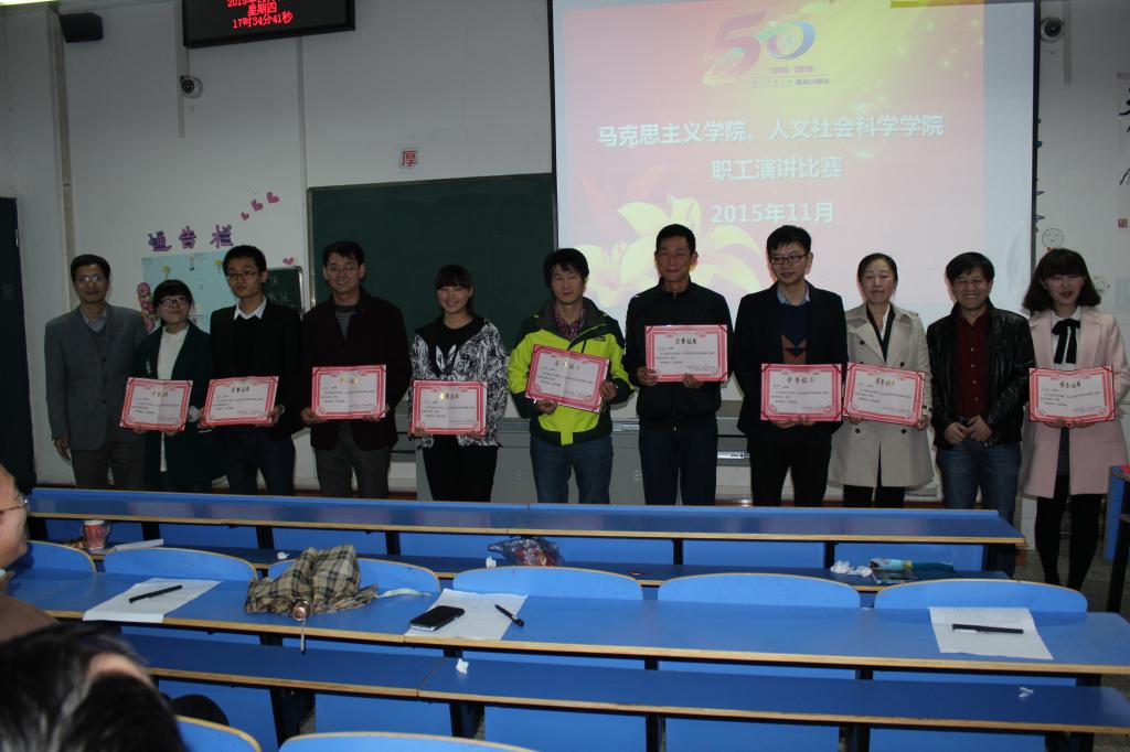 从普鲁斯特的《追亿似水年华》到曹雪芹的《红楼梦》,从“个人梦”到“中国梦”,从哈得波特到许三多,参赛选手以其独特的视角,真实的情感,鲜明的主题,流畅的表达,端庄的形象和富有韵味的现场感染力、吸引力,赢得了评委和在场老师的一直认可和阵阵掌声。最终翟成蹊老师以93.6的高分荣获了本次演讲比赛一等奖;张颖、解斌老师获得二等奖;符俊、吴亚婷和喻林获得三等奖。