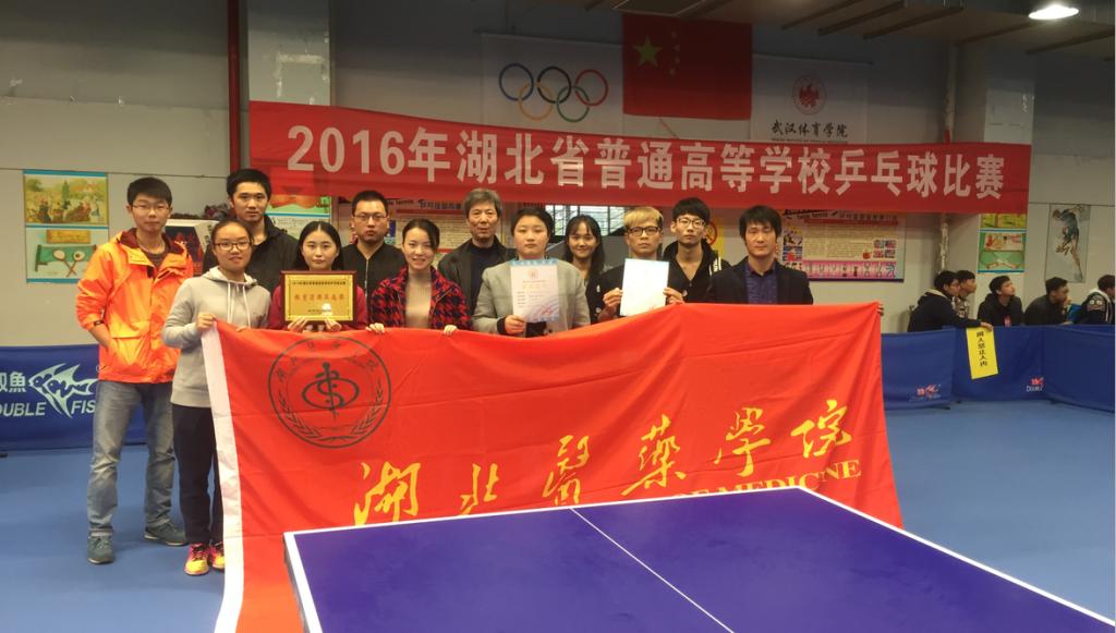 本网讯(通讯员 王锋斌)湖北省普通高校大学生乒乓球比赛于10月28日-30日在武汉体育学院举办,共49所高校参与角逐。我校学生卢爽斩获男子单打第三名,李海斓获得女子单打第五名佳绩,乒乓球队获得了“体育道德风尚奖”。湖北医药学院乒乓球队在此次比赛中表现出了良好体育道德风貌,展现了顽强拼搏的意志品质和良好的团队精神,队员们的精彩比赛吸引了广大观众,并获得了一致好评。