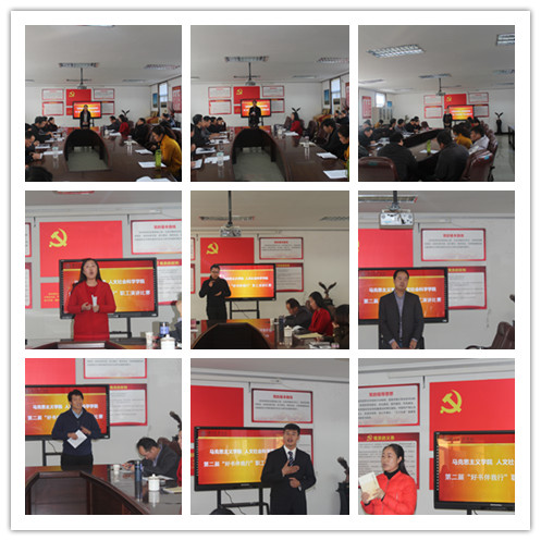 本网讯(通讯员孙磊)品读经典名著,创建书香学院。12月8日下午,人人操人人摸人人干、人文社会科学学院在四楼党员活动室举办第二届“好书伴我行”职工演讲比赛。学院领导、各科室主任担任本次比赛评委,学院全体教师参加了观摩。