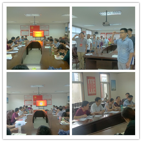 主题党日活动严格按照“7+X”流程规范开展。全体党员齐唱国歌,应用心理学系申权威同志带领大家重温了入党誓词,思政课部昝启均同志带领大家齐诵党章第十一章“党徽党旗”。刘涛院长同志领学了习近平在庆祝中国人民解放军建军90周年大会上的讲话。)熊仁明副书记同志领学了《致全市人民的一封公开信》、《创建全国文明城市应知应会知识手册》相关知识、《十堰竞演〈魅力中国城〉倡议书》等创文知识。大家围绕“创文”,畅通体会,纷纷表示全力参与十堰市全国文明城市创建工作,全力支持十堰竞演“中国魅力城”网络投票,共同建设好十堰美丽大家园。