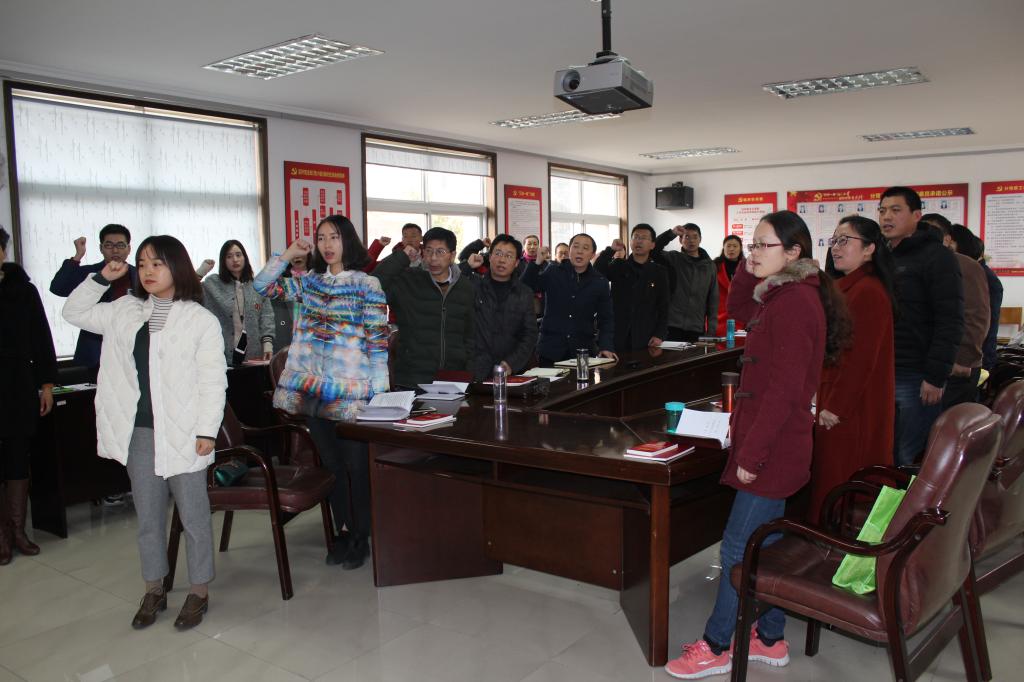 主题党日活动严格按照“7+X”流程规范开展。全体党员齐唱国歌,外语课部聂淼老师带领大家重温了入党誓词,思政课部尉迟光斌博士带领大家齐诵党章第一章“党员”第三条党员的义务。。陈璞副院长领学了党的十九大审定通过的《党章(修正案)》原文,重点学习了习近平新时代中国特色社会主义思想等10个新写入党章的内容。熊仁明副书记同志传达学习了市委、校党委等会议精神。现场教师结合各自学习情况,开展了交流,大家纷纷表示,一定要以习近平新时代中国特色社会主义思想为指引,把学习宣传贯彻十九大精神融入到教学科研中去,立足岗位,扎实工作,为实现医药大学梦贡献力量!