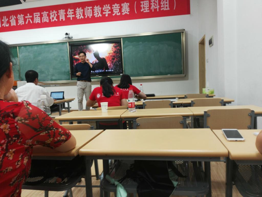 湖北省高校青年教师教学竞赛自2008年开始,每两年一届,按照坚持“讲好一门课”的竞赛理念,围绕教学设计、课堂教学和现场答辩三个环节展开。参赛选手从涵盖教学大纲80%内容的20个教学节段中现场随机抽签,确定当天竞赛具体节段,在没有网络的情况下,必须在3个小时内完成该节段的教学设计和课堂教学环节所用PPT。随即进入20分钟的现场课堂教学环节,最后,要在5分钟内完成评委现场提出的相关问题的答辩。