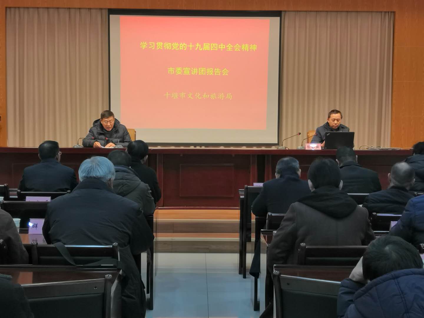 马院陈全新博士到市文化和旅游局宣讲党的十九届四中全会精神