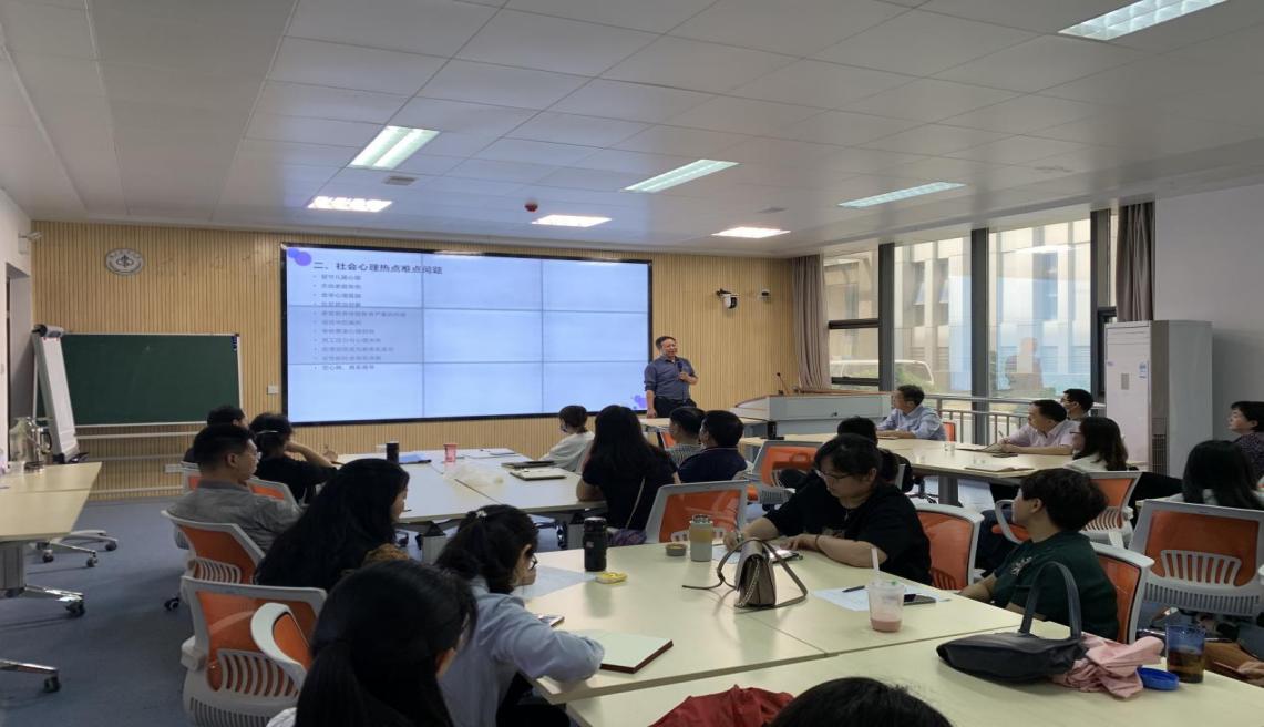 戴教授从社会心理结构理论讲起,结合党的十九大所提出的我国社会主要矛盾已经转化为人民日益增长的美好生活需要和不平衡不充分的发展之间的矛盾。在此大背景下,戴教授分析了当前社会所存在的心理热点以及难点问题:比如留守儿童心理、失独家庭哀伤、老年心理孤独、家庭教养伴随教育严重的内卷、学校霸凌、员工压力与心理冲突、空心病、佛系青年等,并指出了当前客观存在的浮躁、喧嚣、炫富以及炒作等不良社会心态。上述社会心态为何会产生呢?戴教授结合多年的研究经历总结了影响当下社会心理问题的六种因素:社会心理需求、社会矛盾、社会价值观、社会情绪、社会关系和社会期待。