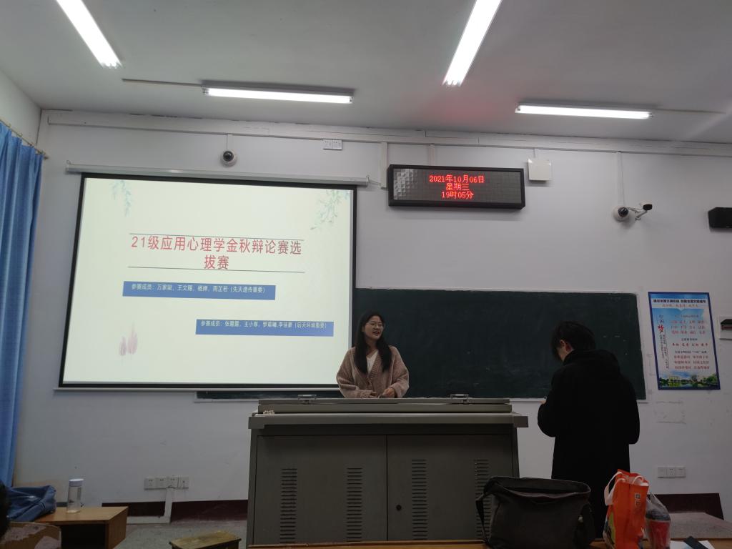 本网讯(通讯员 周一丹)10月6日晚七点,为丰富同学们第二课堂内容,人文学院学院开展了2021级应用心理学金秋辩论赛选拔活动,参与本次活动人员有谭圆圆老师、2020级学生干部以及21级全体学生。