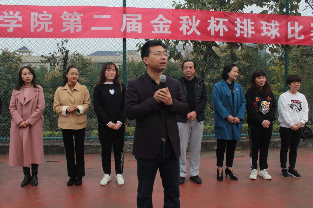 开幕式在庄严肃穆的国歌声中开始,陈璞在开幕词中强调排球运动不仅能够强健体魄,锻炼意志,还能激发潜能,培养合作意识,增强同学间的凝聚力,希望同学们能团结合作、顽强拼搏,赛出友谊、赛出风格、赛出水平,他还特别强调了比赛安全事宜和比赛纪律。裁判员代表和运动员代表也郑重宣誓,承诺将文明裁判,遵守比赛规则和纪律,全力以赴,争取获得优异成绩。开幕式结束后,紧张的排球比赛正式开始。