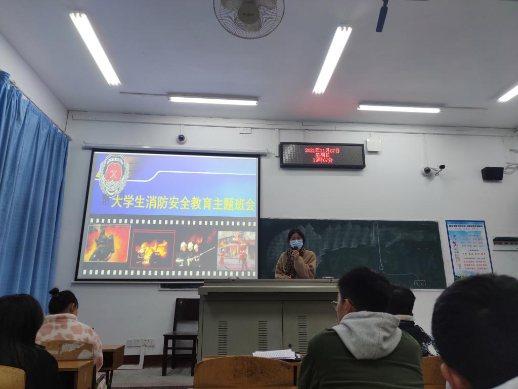 本网讯(通讯员 周一丹)为普及消防知识,提高同学们的消防意识,增强同学们在防火安全方面的社会责任感,11月7日 晚21级应用心理学班在5207教室开展了消防安全教育主题班会,本次班会由辅导员谭圆圆老师主讲。