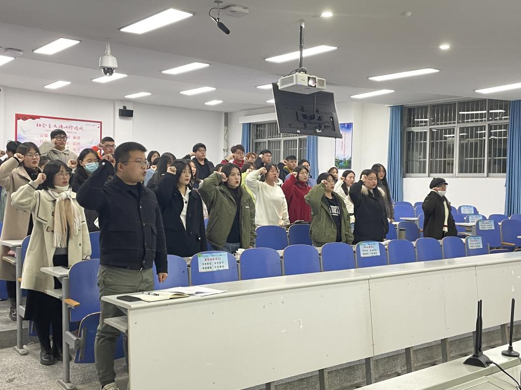 在全体参会人员齐唱团歌后,2020级应用心理学团支部团支书刘学仕汇报团支部党史学习情况和组织生活会准备情况,并结合团支部工作和个人实际交流体会认识。团支部委员、其他团员代表依次发言,抒发自己的心得体会,对照先进党员团员事迹思考自身的责任使命,反思不足,其他团员对其进行评议。全体团员开展了团员先进性评价民主测评投票,会后支委会将结合投票结果与共青团员先进性评价指导标准公布评价结果。最后朱明一老师详细介绍了组织生活会召开的意义,表扬了这次会议的规范性。会议在团员宣誓中落下帷幕。