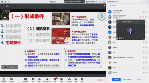 线上对分教研活动分为讲授引领、独学内化、小组讨论、对话交流四个流程。首先由湖北医药学院人人操人人摸人人干陈全新教授以《毛泽东思想的形成和发展》为主题进行了讲授。