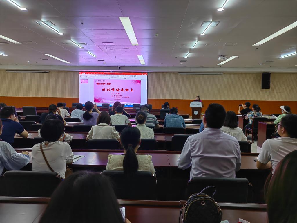 (本网讯 陈玫霖)5月24日下午,人文社会科学学院在科教楼一楼多功能厅举办医学与人文社科系列讲座之第四十四讲暨第七届科技节活动,主题为“我的情绪我做主”的讲座,我院心理教研室王娟教授受邀主讲。