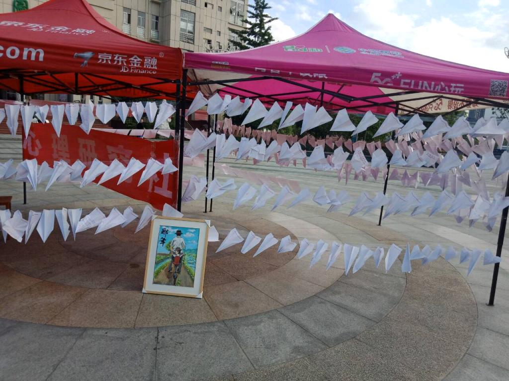 线下活动于5月28日在我校文明广场开展。该活动吸引了数百名同学参与,大家在纸条上分享自己暖心或惊喜的小故事,或写下自己的烦恼和焦虑再将其折成纸飞机晒在阳光下。同学们认真写下故事,并亲手贴在展台。希望此次活动的开展能让我校大学生,学会接受自我,爱自己,爱他人,能够不断地传播爱与正能量。