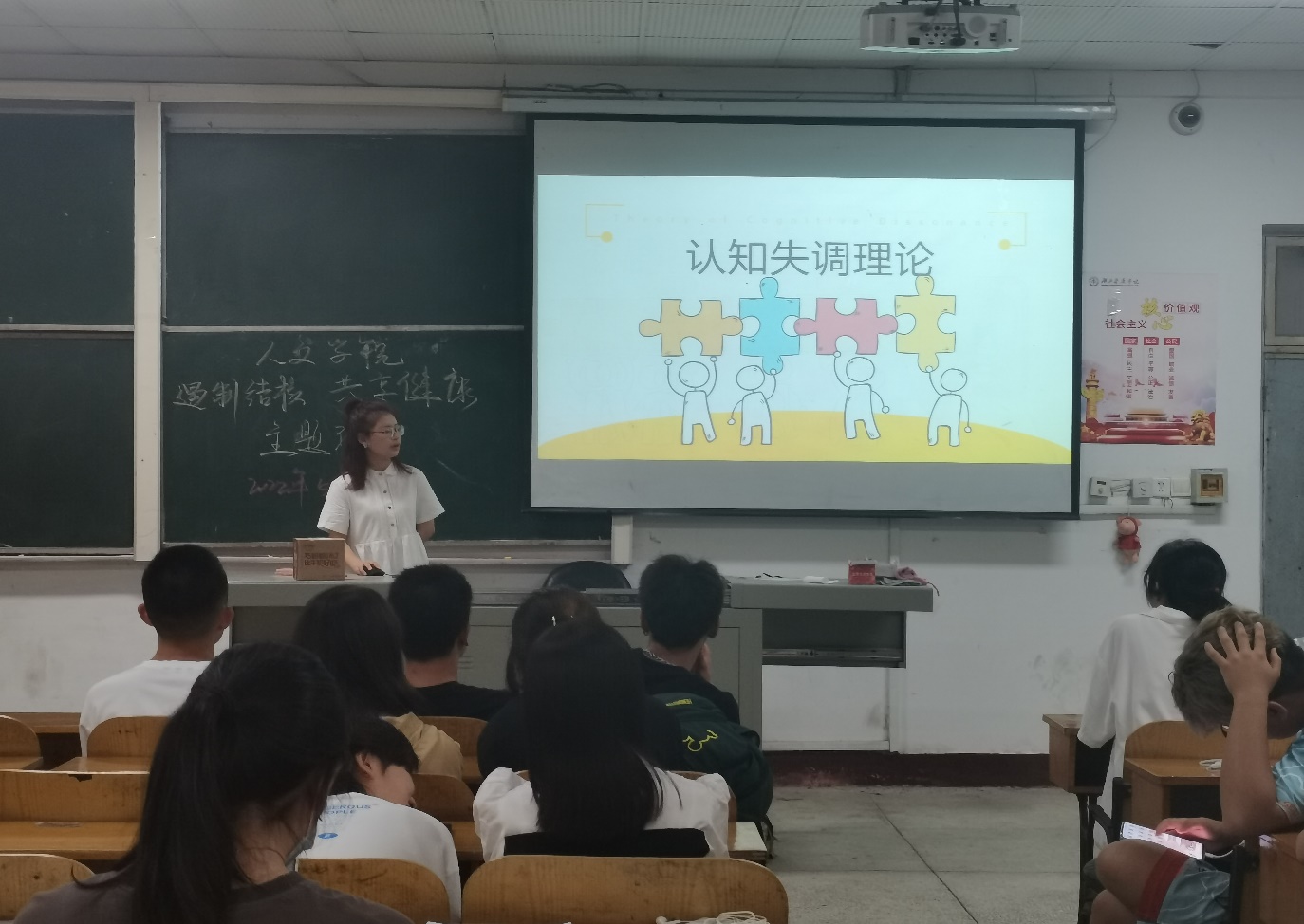 参赛选手潘丹青通过卡皮诺拉吊桥实验及相关影视作品给同学们解释了什么是吊桥效应,同时也联系了生活中的实例,让同学们更深刻地懂得了在生活中该如何运用吊桥效应。