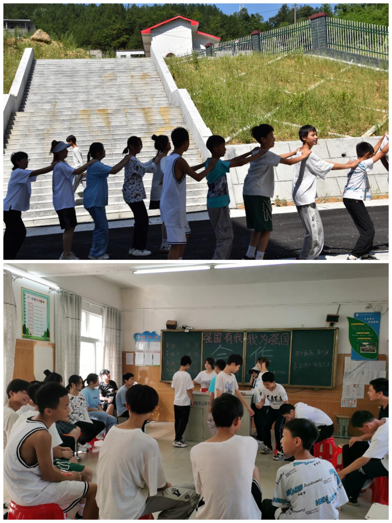 随后,实践队成员带领大家分组依次进行了“七手八脚”、“解手结”等小游戏活动,孩子们积极参与,乐在其中,现场气氛团结友爱,在一片欢声笑语中结束了今日所有的活动。