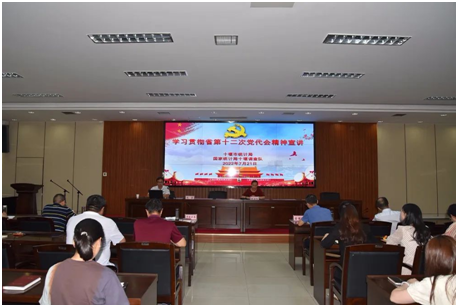 湖北医药学院讲师高崇围绕“习近平总书记的湖北足迹”“湖北省第十二次党代会对中央‘三新’大局的湖北认识、湖北部署”“把握建设‘先行区’的十堰作为”等方面,系统讲解了习近平总书记关于湖北工作的重要讲话和指示批示精神、湖北省第十二次党代会精神、十堰市第六次党代会精神的主要内容和丰富内涵,为各单位党员干部深入学习理解、全面贯彻落实省第十二次党代会精神提供了有力指导。
