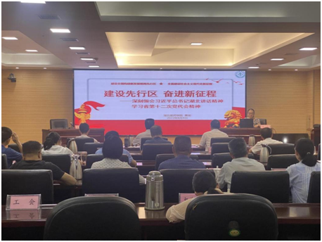陈教授以《立足贯彻三新,建设先行区,奋进现代化》为题,以习近平总书记考察湖北时重要讲话精神为主线,以报告精神为重点,用具体案例数据详细介绍了七项成就、五条经验、主题主线、六新目标、九大任务等核心内容,对习近平总书记考察湖北重要讲话精神和省第十二次党代会精神进行了深度解读。陈教授的宣讲力求以理服人、以事感人、以情动人,做到有案例、有数据、有视频、有音乐、有动画、有图片,让宣讲深入浅出,内涵丰富、逻辑严谨、思想深刻,启发党员干部深刻理解和准确把握习近平总书记考察湖北重要讲话精神和省第十二次党代会精神。