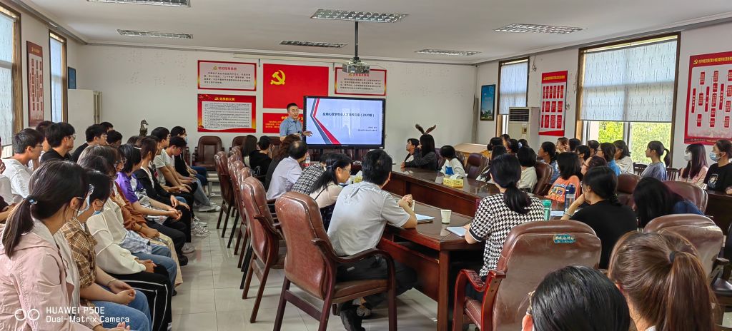 赵万红书记希望同学们在校期间要扎实学好专业知识,提升综合素质,提高人际交往能力,积极参加各类集体活动,同时提醒大家要做好人生规划,要把短期学习目标和长远人生规划结合起来。此外赵书记还对新生开展了反电诈、消防、交通等安全教育。最后刘艳丽副书记再次跟同学们强调了要遵守校纪校规,守好安全底线,国庆节期间严格实行“非必要不离校”、“非必要不离市区”的疫情防控政策,并期望2022级新生们能够树立远大目标,在湖医药实现精彩人生。