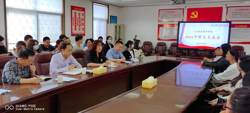 本网讯(通讯员 韩丽萍)9月30日下午,人文社会科学学院在勤政楼四楼会议室召开2022年新生见面会。参加见面会的有学院分党委书记赵万红、副书记刘艳丽、副院长陈全新、应用心理学系全体教师、辅导员和2022级应用心理学专业82名新生。此次会议由刘艳丽副书记主持。