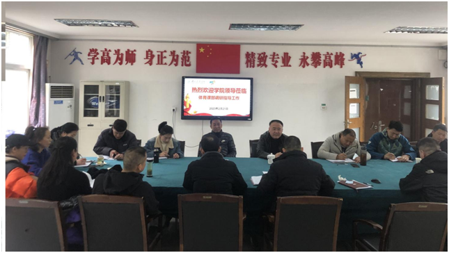 体育课部主任朱红军向学院领导汇报了2022年工作概况和2023年的体育工作计划和展望。刘冰对体育工作做出指示,他指出,希望体育课部把2023年的体育工作推向前进,实现高站位、快发展、多成果。并为体育课部发展提出四点建议:一是在兼顾好教学的同时,全体教师要把更多的精力投入到教研和科研中去,努力提升教科研实力,提升教科研成效;二是体育课部要积极与地方体育部门合作,充分获取和利用更好的体育教科研优势资源;三是要明确教科研目标,实现量化式管理,推动教科研发展的量变到质变的提升;四是向国内具有运动康复专业硕士点的学校取经学习,集中精力和优势资源为我校成功申报体育运动康复硕士点做准备,实现我校体育工作全方位跨越式发展。