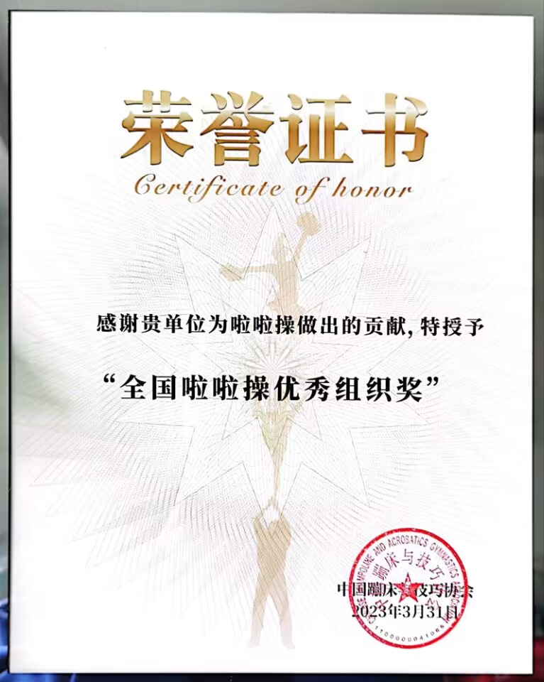 据悉,本届中国啦啦操文化纪由来自全国200多个城市,2400多名省市优秀代表共同参加。此次表彰不仅是对我校多年来组织开展啦啦操项目取得成绩的充分肯定,也成为推动学校体育文化建设的动力。