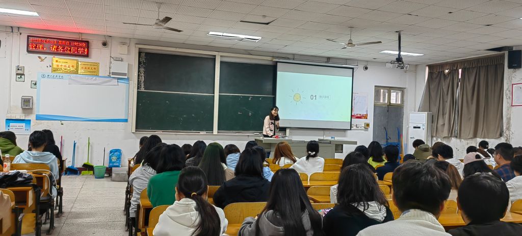 2021级应用心理学班杨婵同学为此次主题分享做了精心准备,她先跟同学们探讨了朋友的定义,介绍了缺乏人际交往对健康带来的影响,缺少朋友,长期孤独可能会患上冠心病、高血压、老年痴呆等疾病。她还通过小游戏引导同学们对自身人际关系情况进行自我探索。