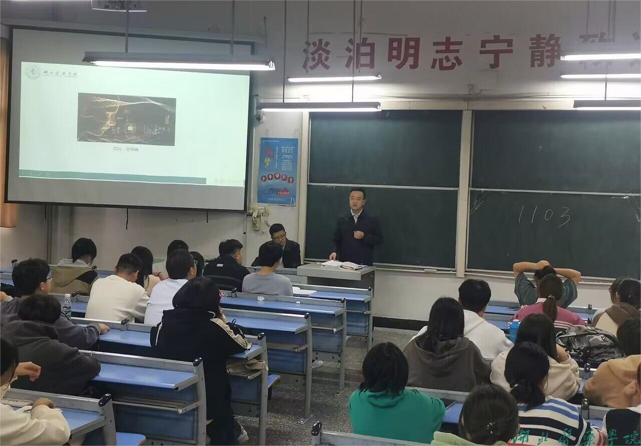 11月4日,党委常委、纪委书记徐荣从目前我国科技面临的“卡脖子”问题的角度出发,为同学们深入解析强国建设的重要作用,同时向同学们讲解十堰市的“留堰人才”政策。