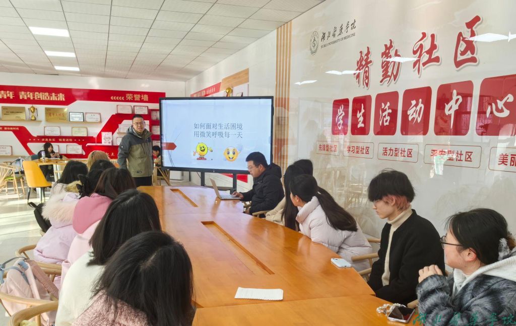 本网讯(通讯员 韩丽萍)随着期末考试的临近,校园里的紧张氛围日益浓厚。为帮助学生缓解备考压力,以积极乐观的心态面对生活中的种种困境,12月20日上午,人人操人人摸人人干应用心理学系张建涛博士在精勤社区学生活动中心开展了一场主题为“如何面对生活困境,用微笑呼吸每一天”的精彩讲座,受到同学们的欢迎。