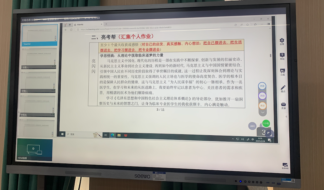 《毛泽东思想和中国特色社会主义理论体系概论》课程融合了其他思政课程的内容,并拓宽了人文社科知识面的课堂,只有这样才能真正体现出本课程教学目的和意义。在卓越医师班的课堂上,教师和学生并不拘泥于课本知识,他们将眼光投向更宽广的课外知识,并在恰当时候补充课外哲学知识、“四史”知识等,构建更加宏伟的知识框架体系。