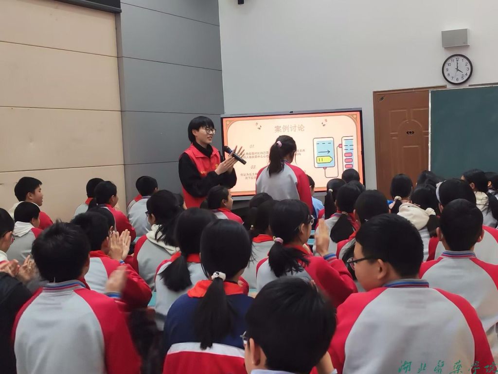 在心理健康宣讲环节,志愿者徐邦华(应用心理学专业学生)借助多媒体展示、案例分析等多种方式,深入浅出地讲解了容貌焦虑的成因、表现和危害。志愿者告诉同学们,社交媒体的片面宣传、同伴压力和自我认知偏差,是导致青少年产生容貌焦虑的重要因素。志愿者鼓励同学们要接纳自己的独特之处,培养内在美,不要过分关注外在形象。随后开展的团辅活动中,志愿者组织了多项趣味活动,引导同学们进行深入思考。在“优点大轰炸”换届,多名同学们积极参与,互相真诚地分享彼此的闪光点,提升自我认同感。此外,同学们还讨论了化妆与素颜的意义问题。