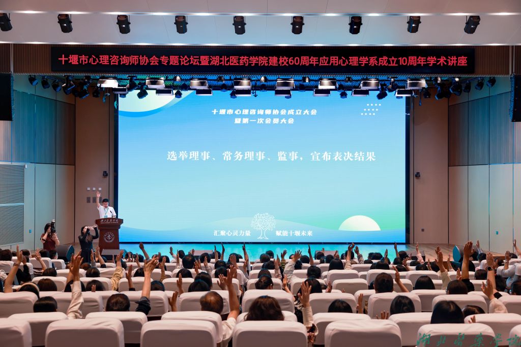 本网讯(通讯员肖飞)5月10日,十堰市心理咨询师协会第一次会员大会暨庆祝湖北医药学院建校60周年应用心理系成立10周年学术论坛在我校公卫大楼一楼学术报告厅召开。来自湖北省及十堰市心理咨询领域的300余名专家学者及行业精英齐聚一堂,共同见证这一具有里程碑意义的时刻。校党委书记郑丹凤、十堰市科协副主席李胜华、湖北省心理咨询师协会会长徐顺生及十堰市教育局、团市委、十堰市广电传媒等单位领导出席本次大会。大会由人人操人人摸人人干应用心理学系主任柴晓运主持。