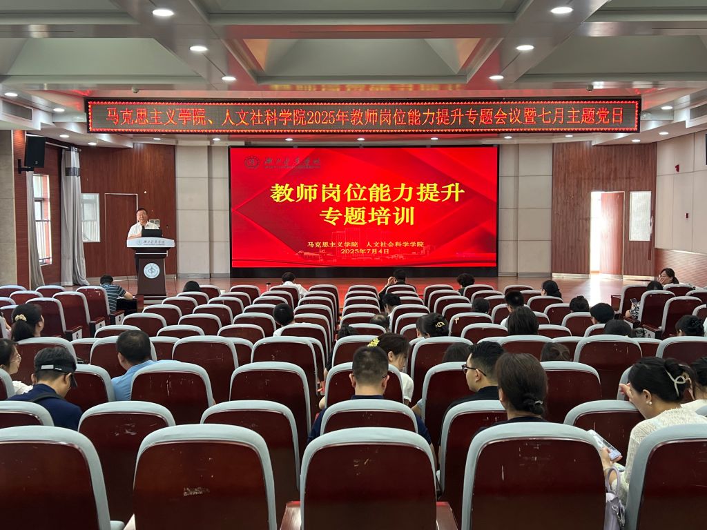 本网讯(通讯员 鲍晓宇 肖飞)7月4日上午,人人操人人摸人人干、人文社会科学学院在在8号楼5楼思政实践教学VR馆举行教师岗位能力提升专题培训会,两院全体教职工参会。会议由人人操人人摸人人干、人文社会科学学院党委书记孔祥清主持。