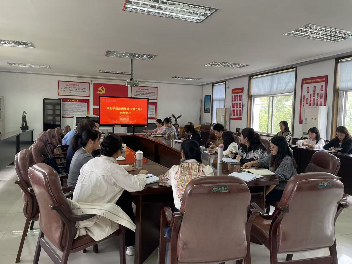 孙磊首先传达了学校关于专题学习《习近平谈治国理政》(第五卷)的通知,对相关章节内容进行了导学。学院第一党支部书记昝启均就《习近平谈治国理政》第五卷的整体逻辑、理论创新、现实意义谈了体会,他认为这部重要著作鲜活呈现了党中央以习近平同志为核心,在错综复杂的国际形势与艰巨繁重的改革发展任务面前,统筹国内国际两大棋局,完整、准确、深入践行新发展理念,聚焦高质量发展,科学布局并推进深层次改革与高水准开放,迎难而上、奋勇前行,为全面建设社会主义现代化国家奠定坚实步伐的生动历程。尉迟光斌教授就《习近平谈治国理政》第五卷中第八章《发展新时代中国特色社会主义文化》谈了学习体会,他认为习近平文化思想是新时代党的文化旗帜,是引领新时代中国共产党人和中国人民担负文化使命、推动文化繁荣、建设文化强国的思想之旗。发展新时代中国特色社会主义文化是习近平文化思想的重要内容。姚小飞教授就如何学习贯彻《习近平谈治国理政》第五卷谈了自己体会,她认为学习贯彻要做到“三个坚持”,即坚持整体性发展性、坚持体系化学理化、坚持权威性指导性。《习近平谈治国理政》第五卷是习近平在领导治国理政新的实践中形成的一系列新思想新观点新论断,用这些新思想新观点新论断指导实践,进一步丰富发展党的创新理论。习近平新时代中国特色社会主义思想概论教研室王刚老师就《习近平谈治国理政》第五卷如何融入思政课谈了自己看法,提出要在把握学生实际的基础上,及时把《习近平谈治国理政》第五卷中最新的论述观点及时融入习近平新时代中国特色社会主义思想概论课程中,坚持思政课建设与党的创新理论武装同步推进。