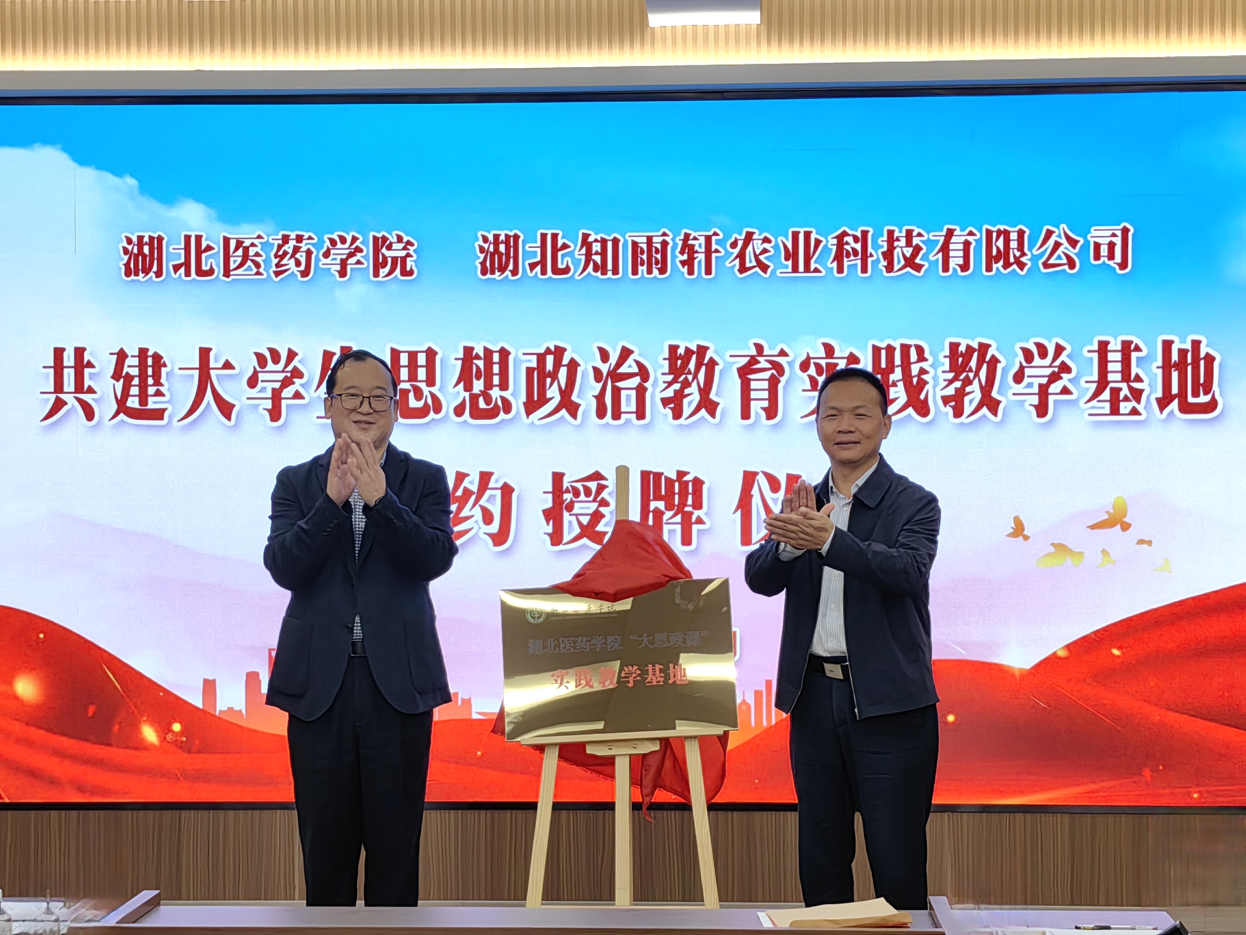 本网讯(通讯员 肖飞)10月13日,我校又一个大学生思想政治教育实践教学基地落地十堰市张湾区知雨轩·田园综合体。校党委常委、宣传部部长陈建龙,原党委书记涂汉军出席签约授牌仪式。学工处、校团委、人人操人人摸人人干、研究生院、国际教育学院等相关单位负责人共同参加。此次合作标志着我校思政实践教学基地增至34家,为医药类院校探索“专业特色+思政实践”融合育人模式再添新平台。